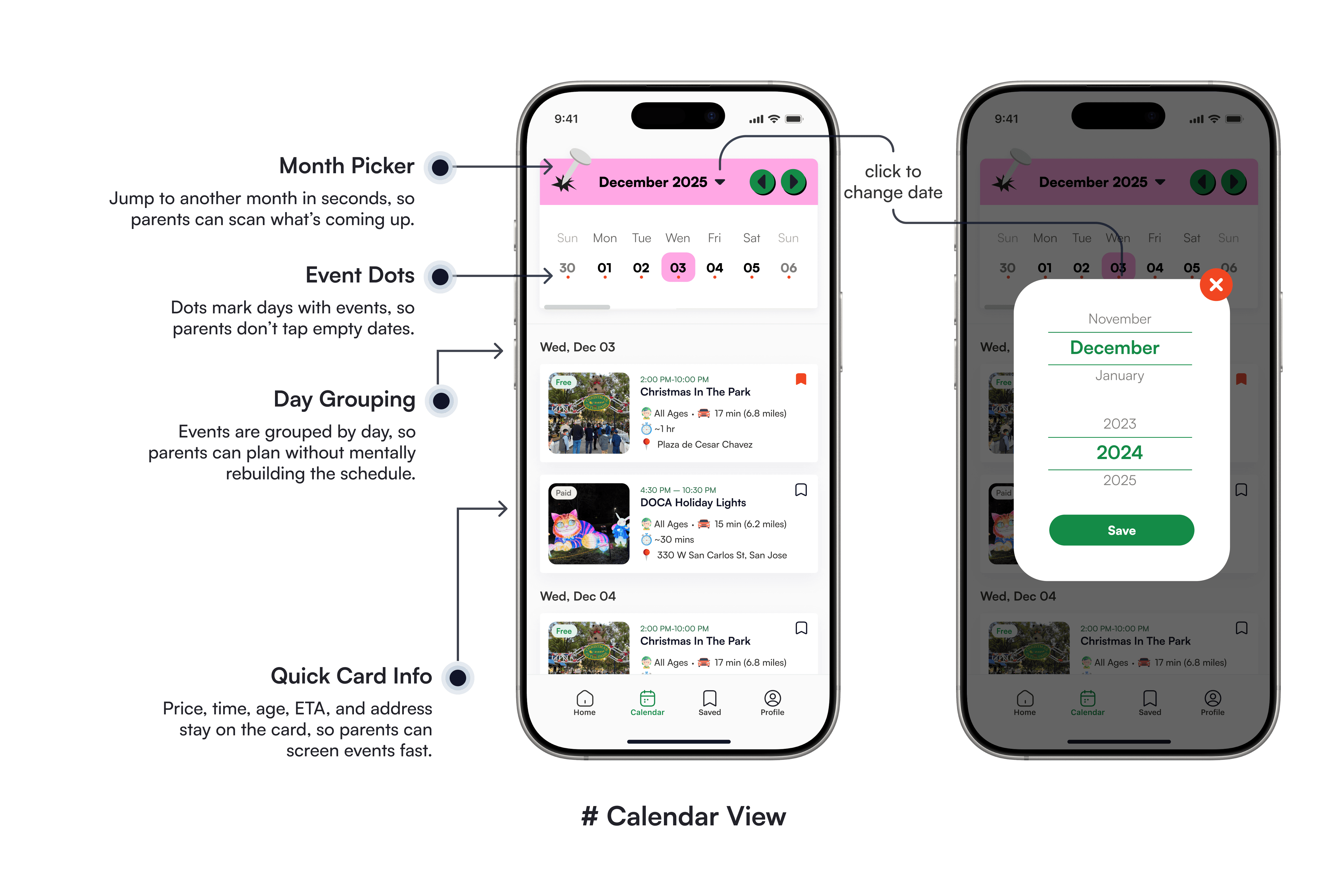 Events should be easy to scan, with age fit, location, and logistics clearly surfaced upfront.