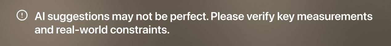 A brief disclaimer sets clear expectations that AI suggestions may be imperfect, encouraging users to double-check key details.