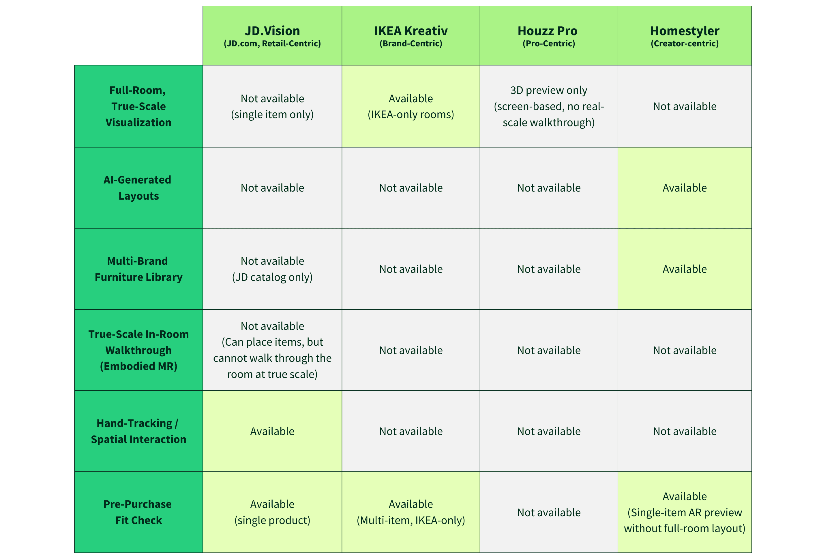 Allow users to place and compare furniture from multiple brands in the same room, instead of being limited to a single brand or retailer’s catalog.