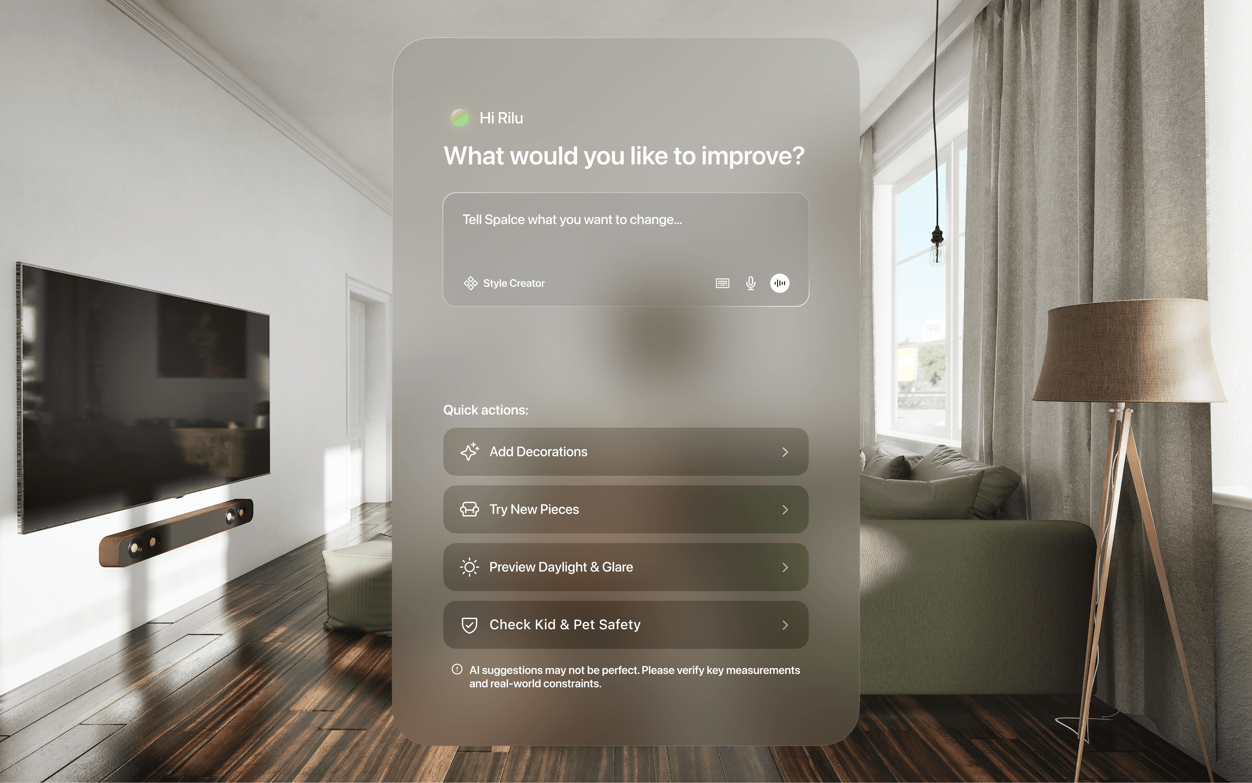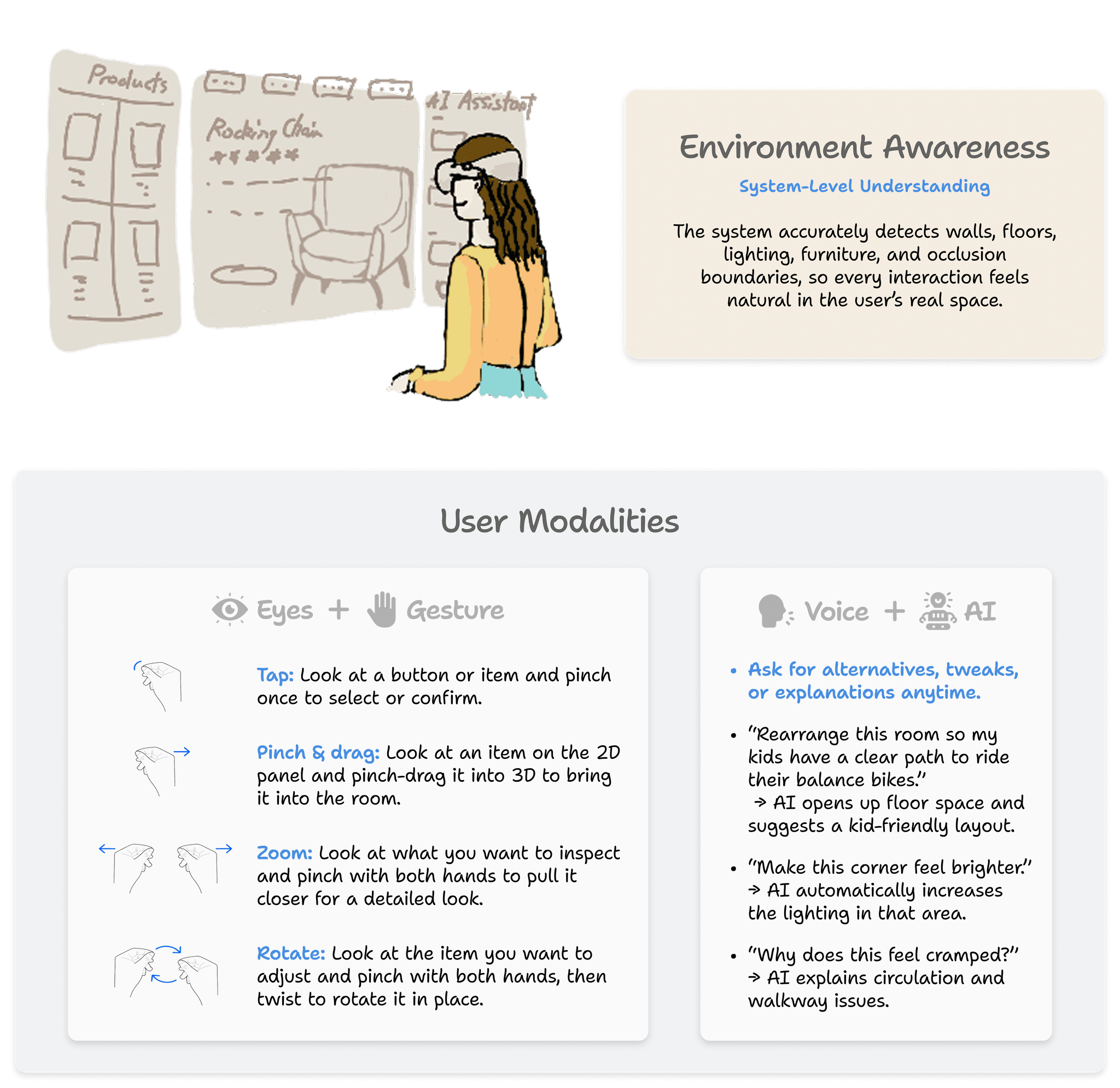 Spalce combines gaze, gesture, and voice with real-world environmental awareness to create a low-friction, spatially intuitive workflow for home design.